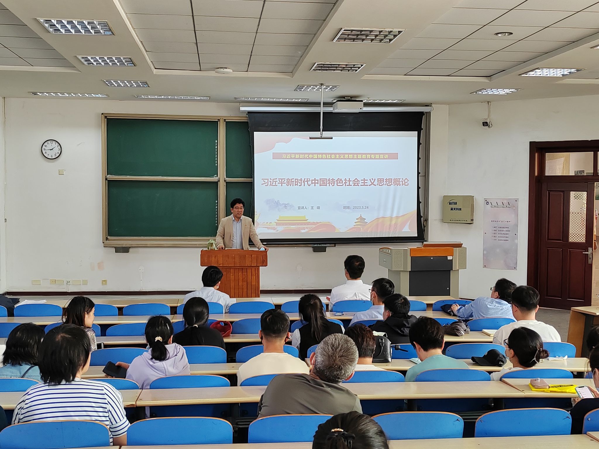 为推动学习贯彻习近平新时代中国特色社会主义思想主题教育走深走实、见行见效,教育引导学院党员干部真正做到学深悟透、知行合一。学院于5月24日下午,特邀马克思主义学院副院长王啸以《习近平新时代中国特色社会主义思想概论》为题作主题教育专题宣讲。会议由学院党委书记张召鹏主持,学院全体处级干部、教职工参加会议。