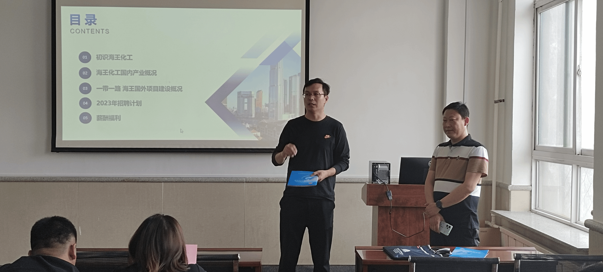 招聘会上,山东海王化工股份有限公司张经理向同学们介绍了公司的起源、发展、独播库、业务范围等基本情况,详细地为大家讲解了公司生产运营布局,分享了海王国内外项目建设概况。同时表示,公司会广纳贤才,诚挚邀请各位毕业生加入海王化工。