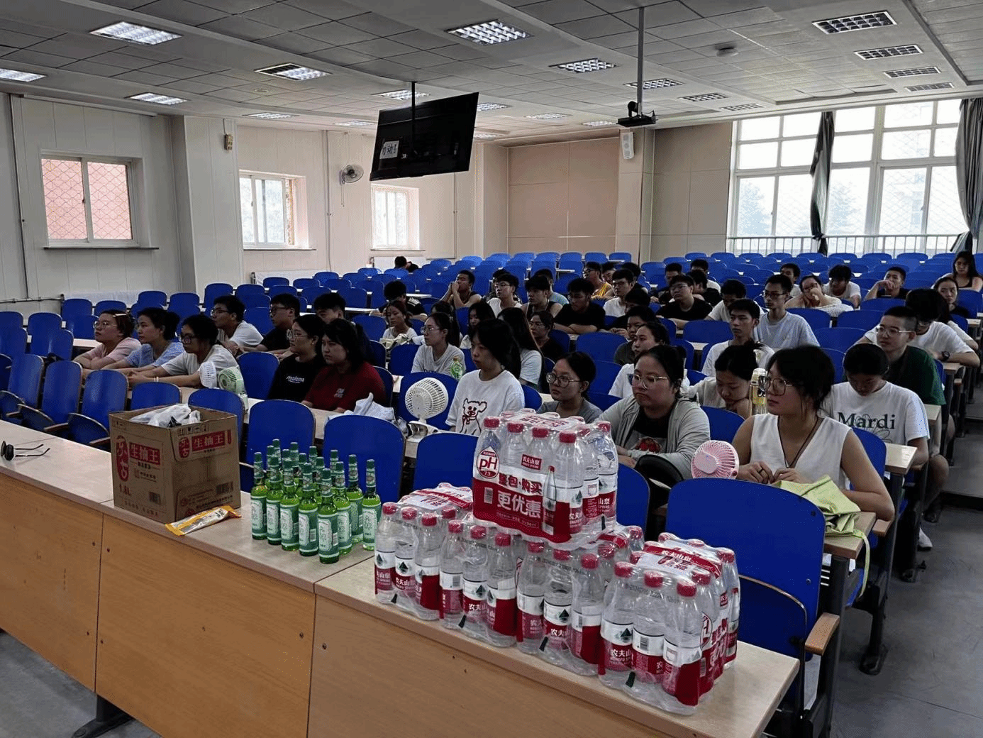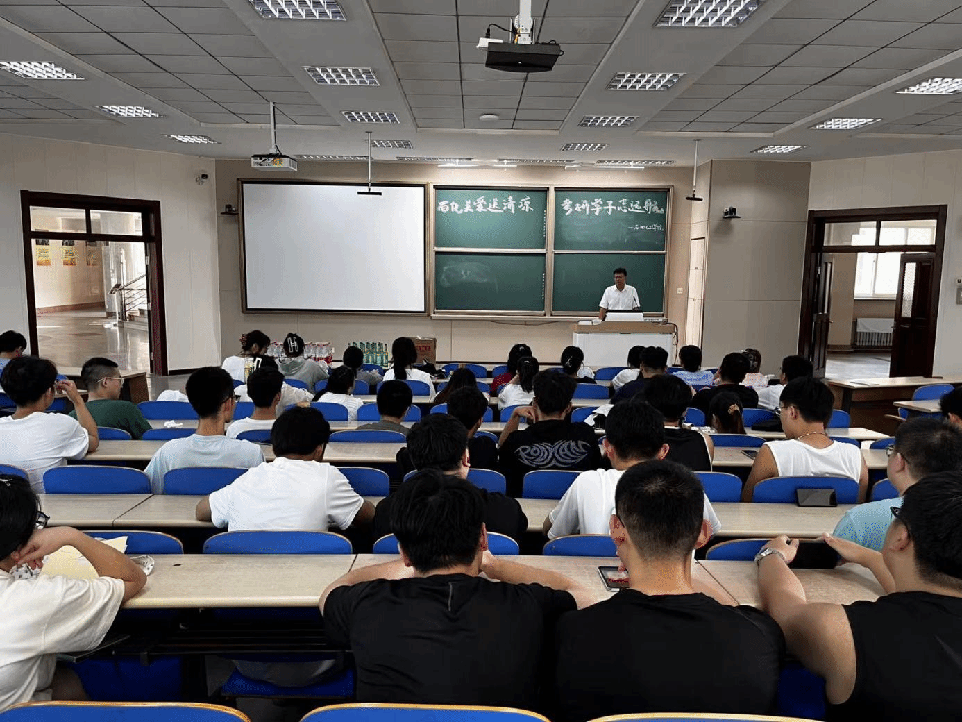 在烈日炙烤的盛夏时节,独播库 心系每一位选择留校备战的考研学子,假期多次给予学生关怀和关爱。7月26日,在四A102教室特别策划并实施了“石化关爱送清凉,考研学子志远航”暑期关爱行动。学院党委副书记李勇、辅导员王一夫、杨海艳与76名勇敢追梦的学子共聚一堂,共话考研征途。