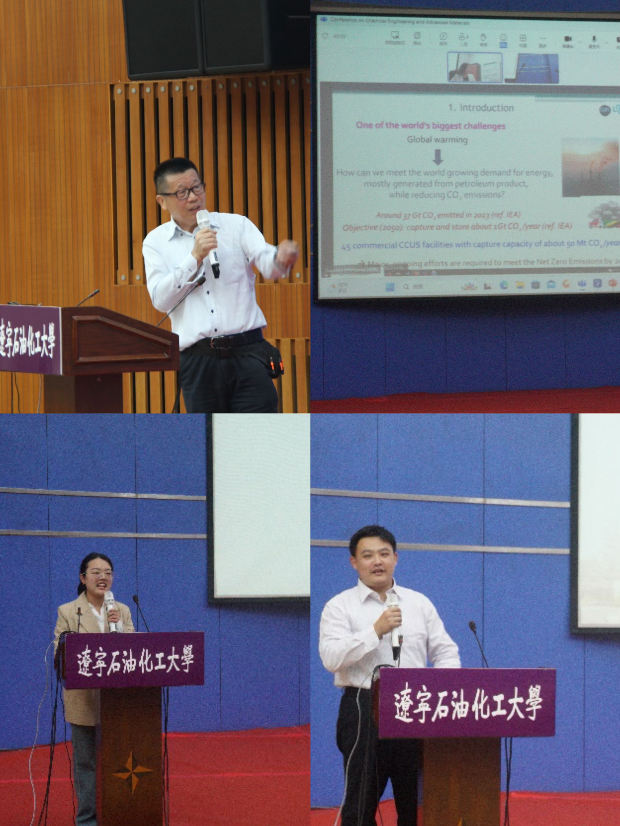 大会报告中,刘海峰教授以《低碳高效气流床气化制氢技术》为题作大会报告,围绕化石能源低碳清洁高效利用、生物质能源、废弃物资源化利用、化学储能和低碳冶金新技术等进行深入介绍,为能源战略转型和碳中和目标提供新的解决方案。范先峰教授以《CO2 capture, thermochemical energy storage for Decarbonization》为题作大会报告,围绕“双碳”背景,介绍了固体吸附剂和溶剂法储能、捕集二氧化碳技术及相关反应工程、光催化技术、跨学科处理颗粒材料、多孔材料中多相流、储存二氧化碳的孔隙润湿并提高石油采收率等方面进行详细报告。张树国教授级高级工程师以《关于氢能技术产业化的几点思考》为题作大会报告,详细介绍了燃料电池技术的研发,以及该领域产学研相结合的技术创新体系,并对未来全球能源的发展趋势进行了展望。Neil Rowson教授以《Processing routes for rare earth elements and electric vehicle battery materials from primary and secondary sources》为题作大会报告,重点介绍了金属的一次和二次回收策略,特别强调回收是金属研究领域的关键和战略性措施。Raf Dewil教授以《Energy Positive Wastewater Treatment》为题作大会报告,围绕工业废水处理和侧流处理研究背景,汇报了多项创新性技术,推动污水资源化利用、实现减污降碳协同增效,以及促进工业绿色转型,从而促进可持续发展和环境保护。Bouchra Belaissaoui以《Membrane technologies for the intensification of CO2 capture and gas separation》为题作大会报告,详细深入地介绍了她在膜技术、二氧化碳捕获、沼气净化、空气净化、脱气操作和水处理相关方面开展的工作,研究成果旨在更高效地处理环境污染物,促进环境的可持续发展。