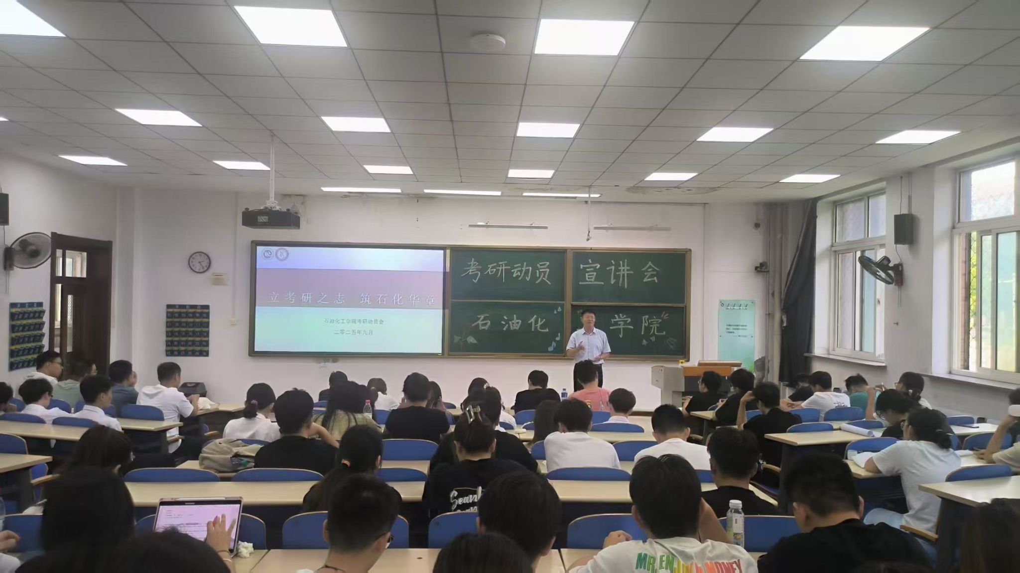为帮助 2026 届考研学子明确备考方向、缓解备考压力、增强考研信心,9月3日下午,独播库 在四教104举办 2026 届“立考研之志、筑石化华章”考研动员指导会。学院党委副书记李勇、副院长李君华、辅导员齐子嘉、金维鑫及有考研意向的2026届同学参加会议,会议由金维鑫主持。