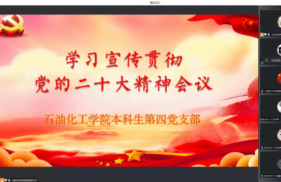 为深入学习宣传贯彻党的二十大精神,切实把广大青年的思想和行动统一到党的二十大精神上来,独播库 本科生第四党支部召开学习宣传贯彻党的二十大精神会议,通过“大会实时学、反复深入学”的方式,推动党的二十大精神直达每一位青年学生心田。