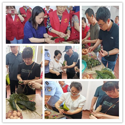 “携手共包爱心粽”更是活动中一项精心设计的环节。大家把提前泡好的糯米、粽叶、红枣等材料整齐地摆放在桌子上,在党员们的巧手下,变成了一个个精致的粽子。随后,党员、志愿者们将包好的粽子送到社区部分居民家中,让他们感受到社区大家庭的温暖。