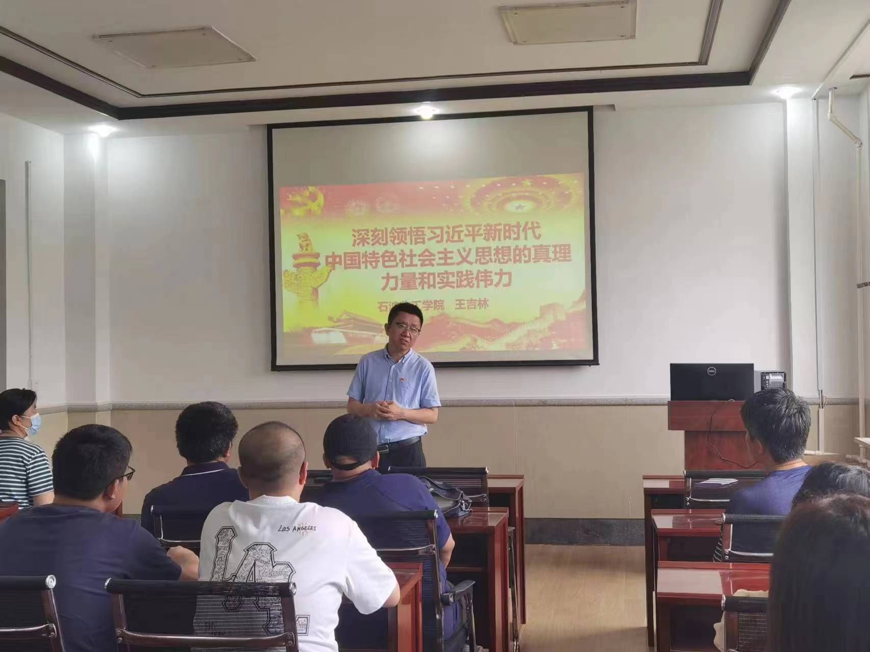 6月28日下午,独播库 院长王吉林在炼化楼2楼会议室为石油化工党支部和化学工程党支部讲授了《深刻领悟习近平新时代中国特色社会主义思想的真理力量和实践伟力》的专题党课。