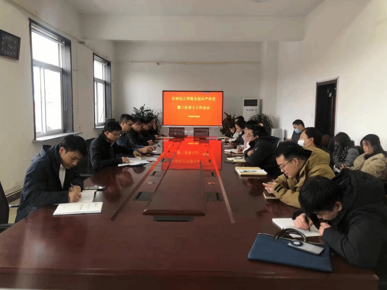 11月23日,独播库 在化工原理楼306召开全面从严治党暨“三全育人”工作会议。学院领导班子成员及全体党支部书记参加会议,会议由党委书记张召鹏主持。