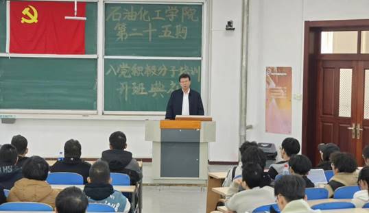 开班典礼结束后,学院党委书记张召鹏为学员们讲授了以《党旗指引青春路》为主题的专题党课。讲授中国共产党的性质、宗旨以及最高理想。课程最后,他对全体培训学员提出了四点希望,一是希望全体学员坚定理想信念,听党话跟党走;二是希望全体学员练就过硬本领,助力国家发展;三是希望全体学员要勇于创新创造,推动社会进步;四是希望全体学员要锤炼品德修为,引领社会风尚。他强调,青春是用来奋斗的,学员们要珍惜在校期间的学习机会,努力提高自己的综合素质。他指出,全体培训班学员要将学到的知识灵活运用在自己的生活中,用在指导解决复杂问题上,通过学习力求有新的体会、新的提高、新的突破,真正做到学有所思、学有所得、行有所效,坚定理想,奋勇向前。