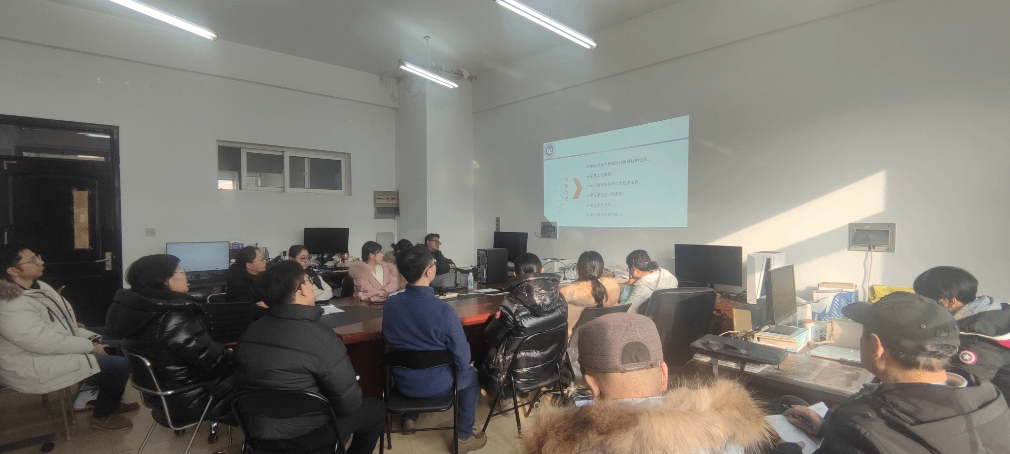 2023年12月13日下午,高分子材料与工程专业基层教学组织在化材楼520召开主题为“《高分子材料研究方法》课程改革与实践”的教研活动。本次教研会由赵凤阳老师主讲,高分子材料与工程专业全体教师参会,有幸邀请到学校督导组张振华与金英杰两位老师共同指导,新入职的张登华老师也一同参加了研讨。