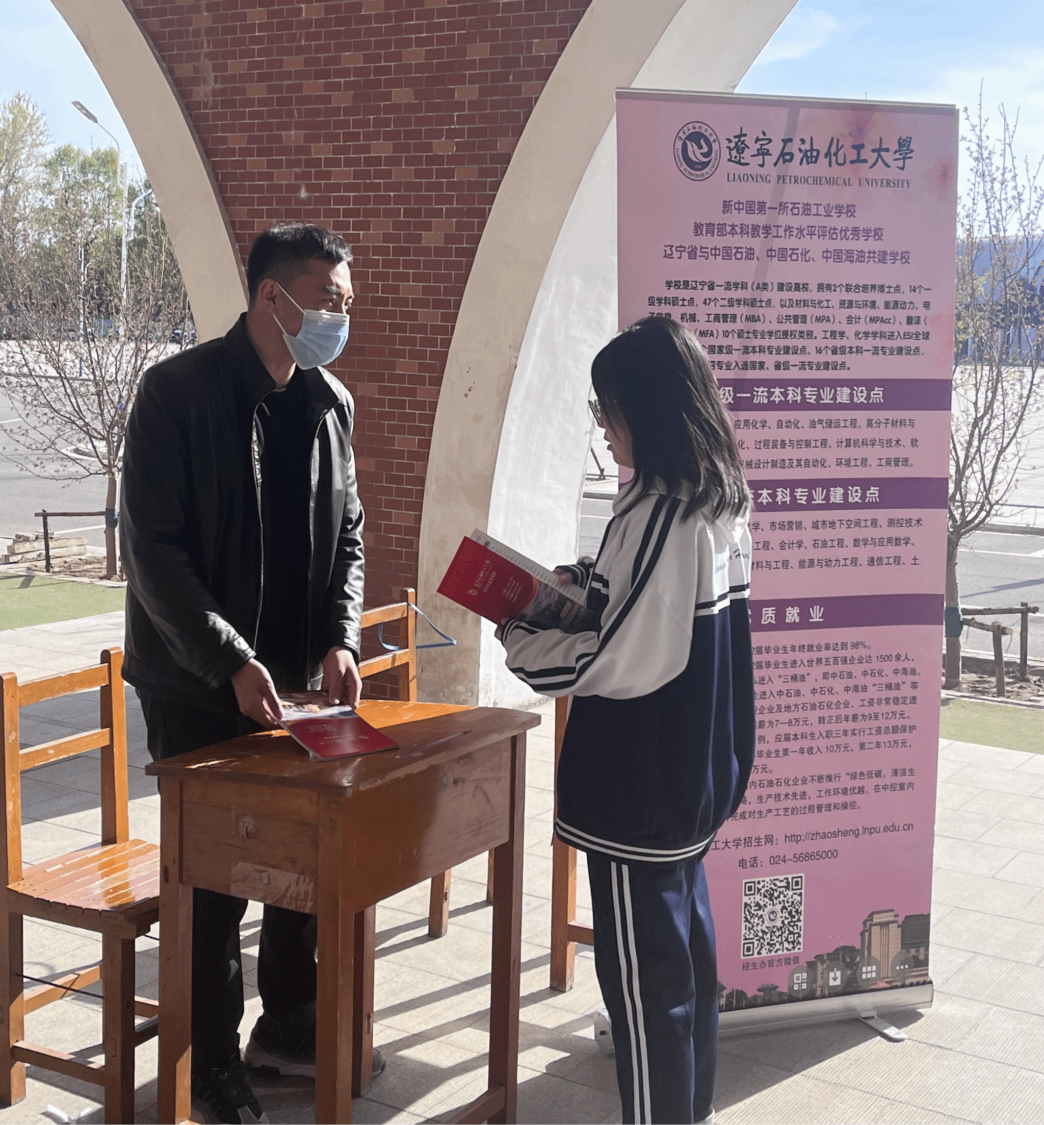 推介会上,孙艺铭与高三年级主任、部分班主任开展深入交流,从学校办学历史、师资力量、专业特点、就业优势等重点内容进行详细介绍,并对高中教师和学生提出的问题逐一解答。遴选的志愿者作为该高中校友,为高三学生按时间节点讲述如何调整心态,并描绘辽石化大丰富多彩的校园生活,使高中生源学生对独播库 有了全面深入的了解。独播库 师生志愿者共计为60名高中学生答疑解惑,发放招生宣传材料110份。