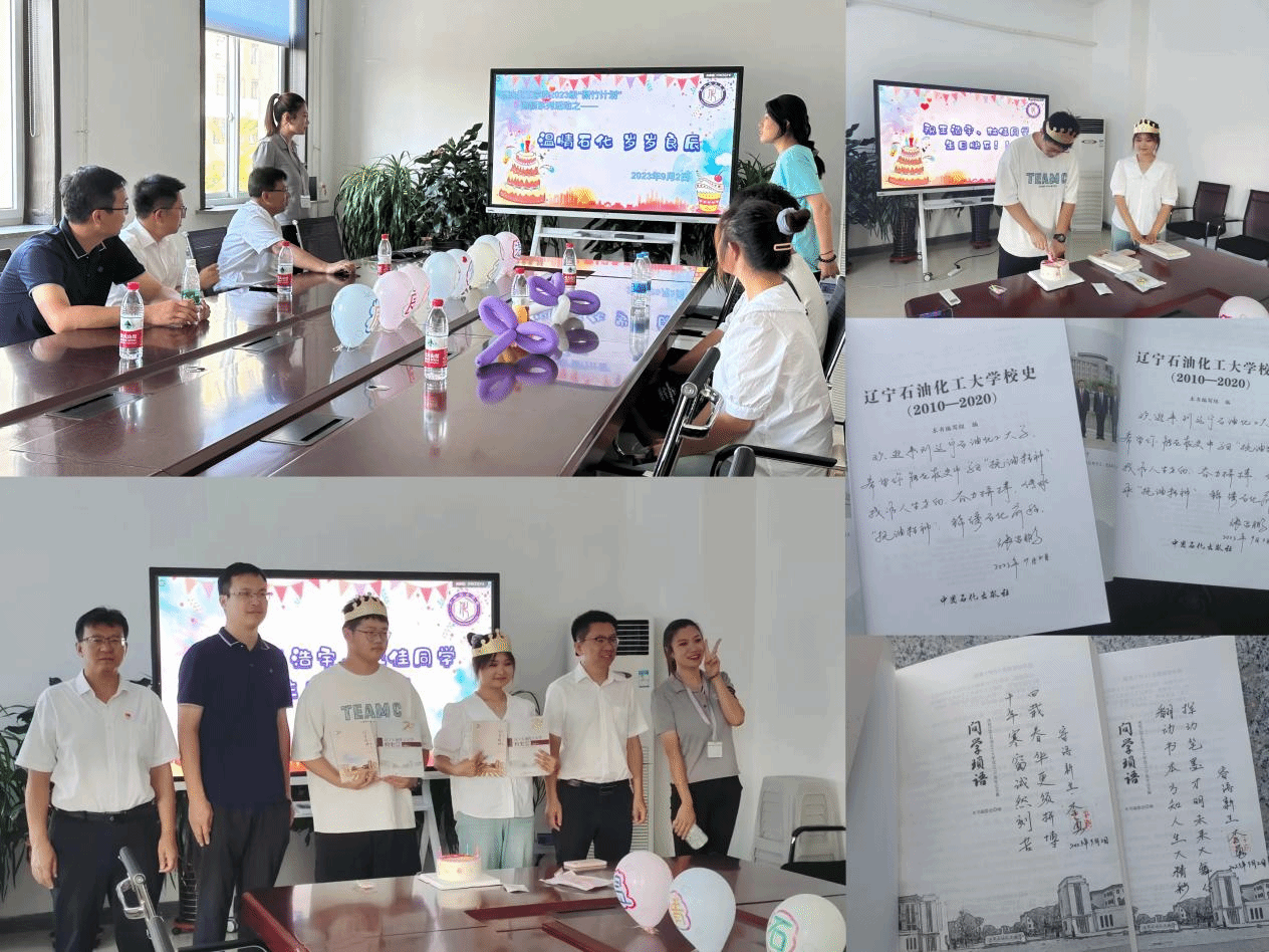 生日会会场布置别具一格,生日蛋糕上写着两位新生的名字和学院对新生的美好祝福。学院党委书记张召鹏、院长王吉林、副书记李勇、团委书记左浩淼共同为两位新生唱响生日歌,点燃生日蜡烛。学院还为两位新生准备了《独播库 校史》作为生日礼物,每本书上都写有学院领导的题词寄语,“欢迎你们加入独播库 ,希望你传承抚油精神,锦绣石化前程......”谆谆祝福表达了学院对2023级新生的殷切期盼。2023级新生“小寿星”、应化2302班新生杜佳表示:“学院精心设计的生日会让我十分惊喜,感受到了学院的温暖。这个生日意义非凡,不仅仅代表自己又成长了一岁,更意味着开启了崭新的一页和全新的征程。”